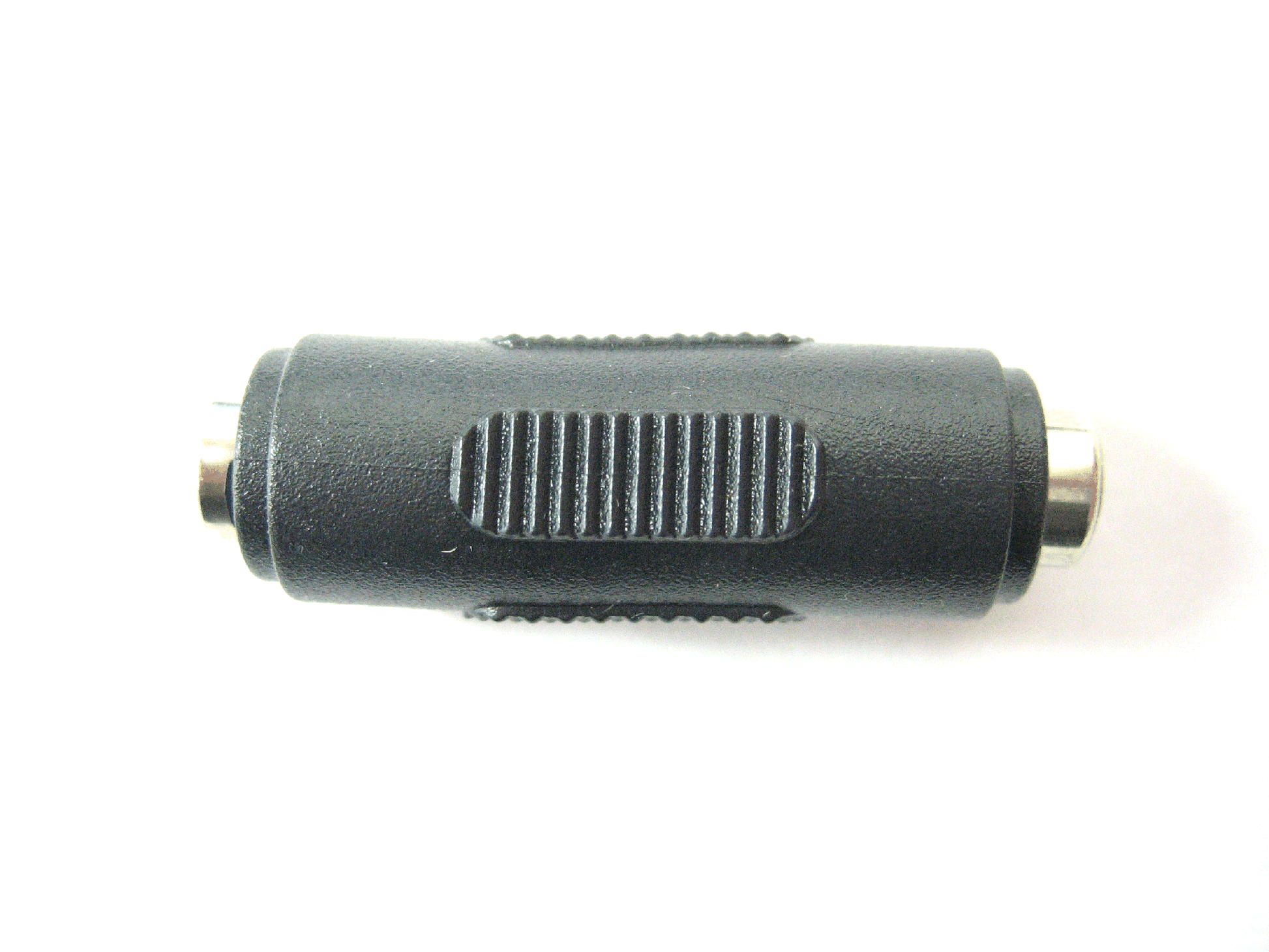 A connector with 2.1mm x 5.5mm jacks sockets on both ends. Useful for converting an adaptor with a 2.1mm x 5.5mm jack to a 2.1mm x 5.5mm socket