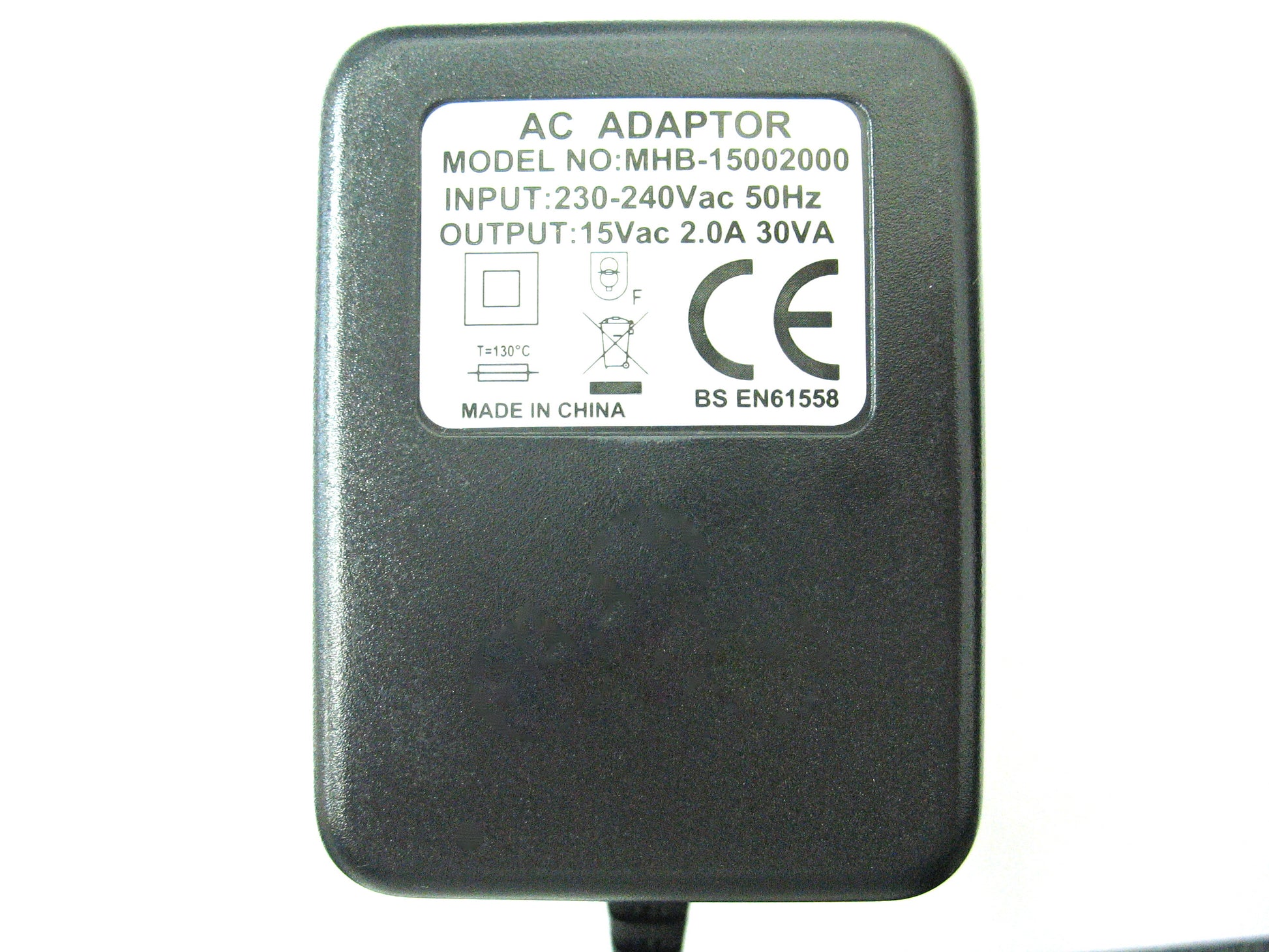 A 2 amp 15 volt 30VA Power Supply suitable for many 15 volt appliances requiring an AC input of 2000ma.