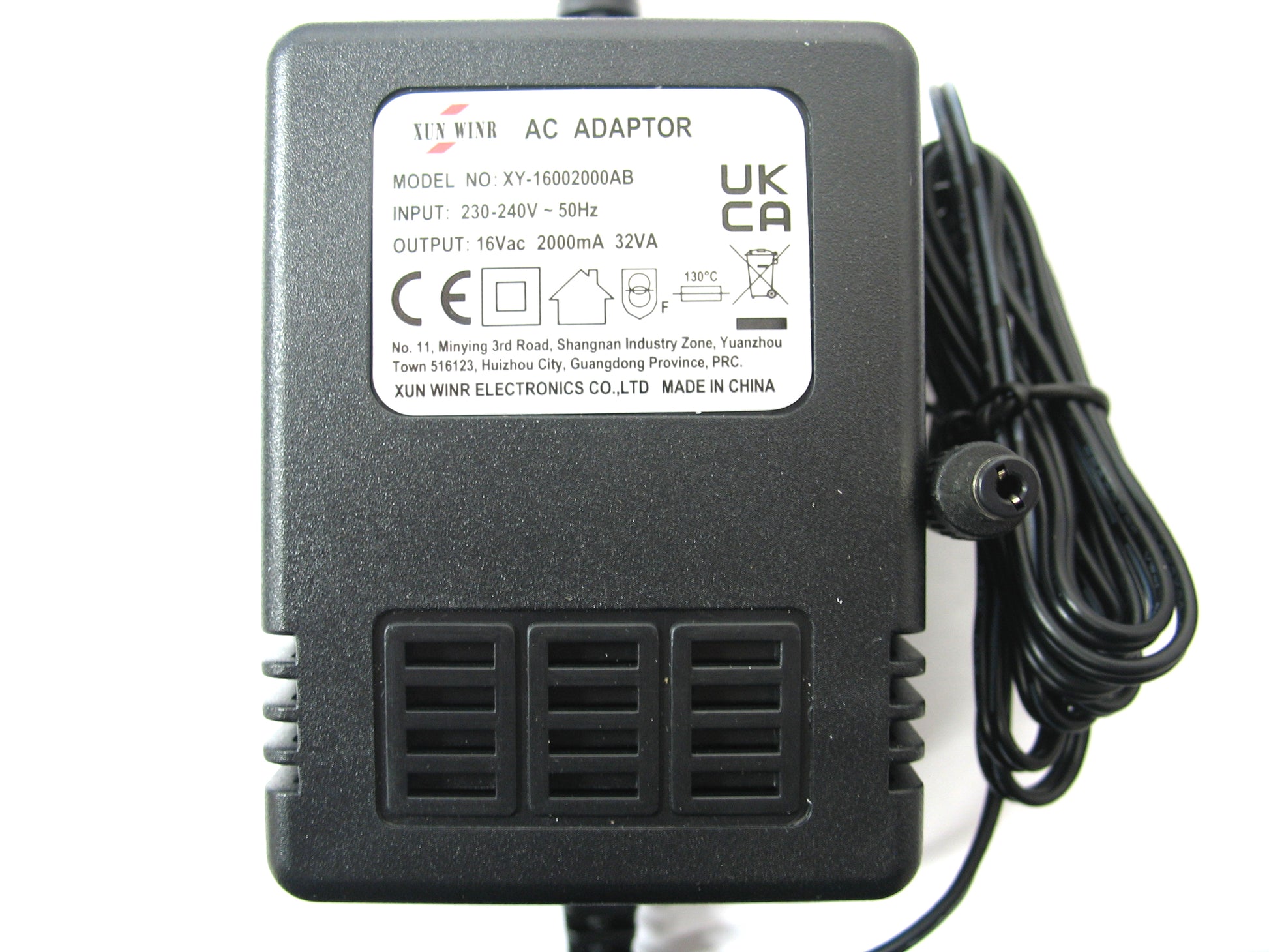 A 2 amp 16 volt 32w Power Supply suitable for many 16v appliances requiring an AC input of 2000ma