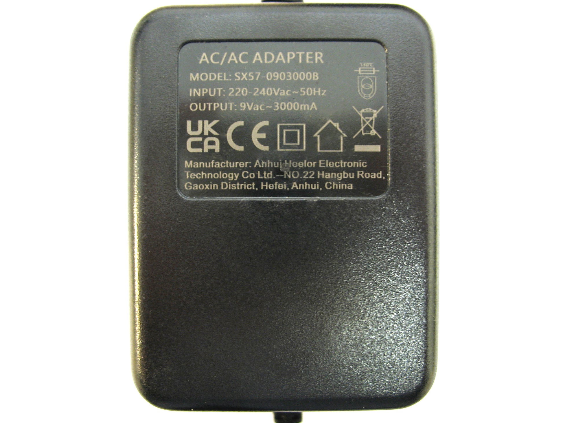 A 3 amp 9 volt 27VA power supply suitable for many 9 volt appliances requiring an AC input of 3000ma.