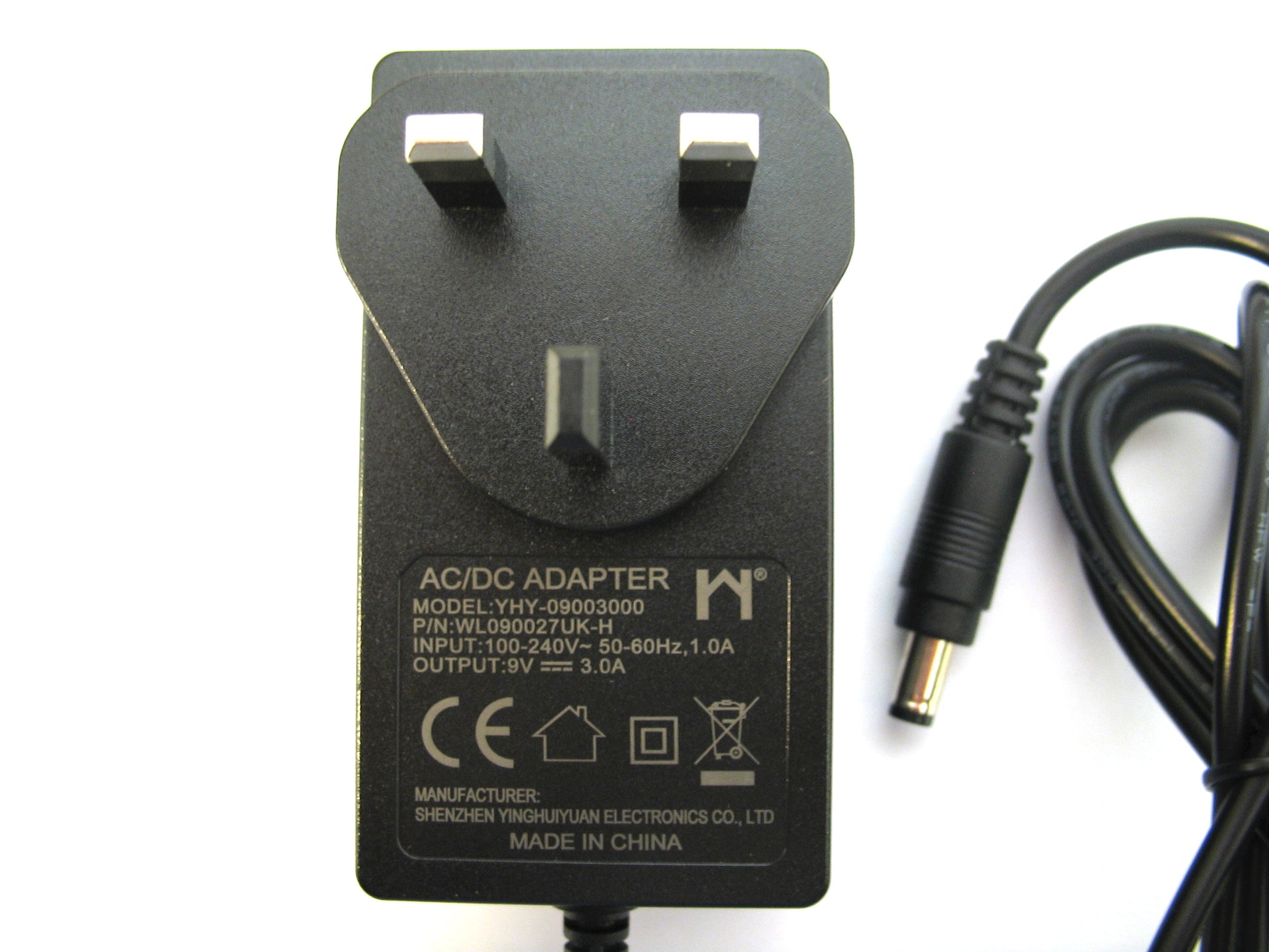 A 3 amp 9 volt 27 watt regulated switch mode power supply suitable for many 9 volt appliances requiring a DC input of 3000ma or lower.