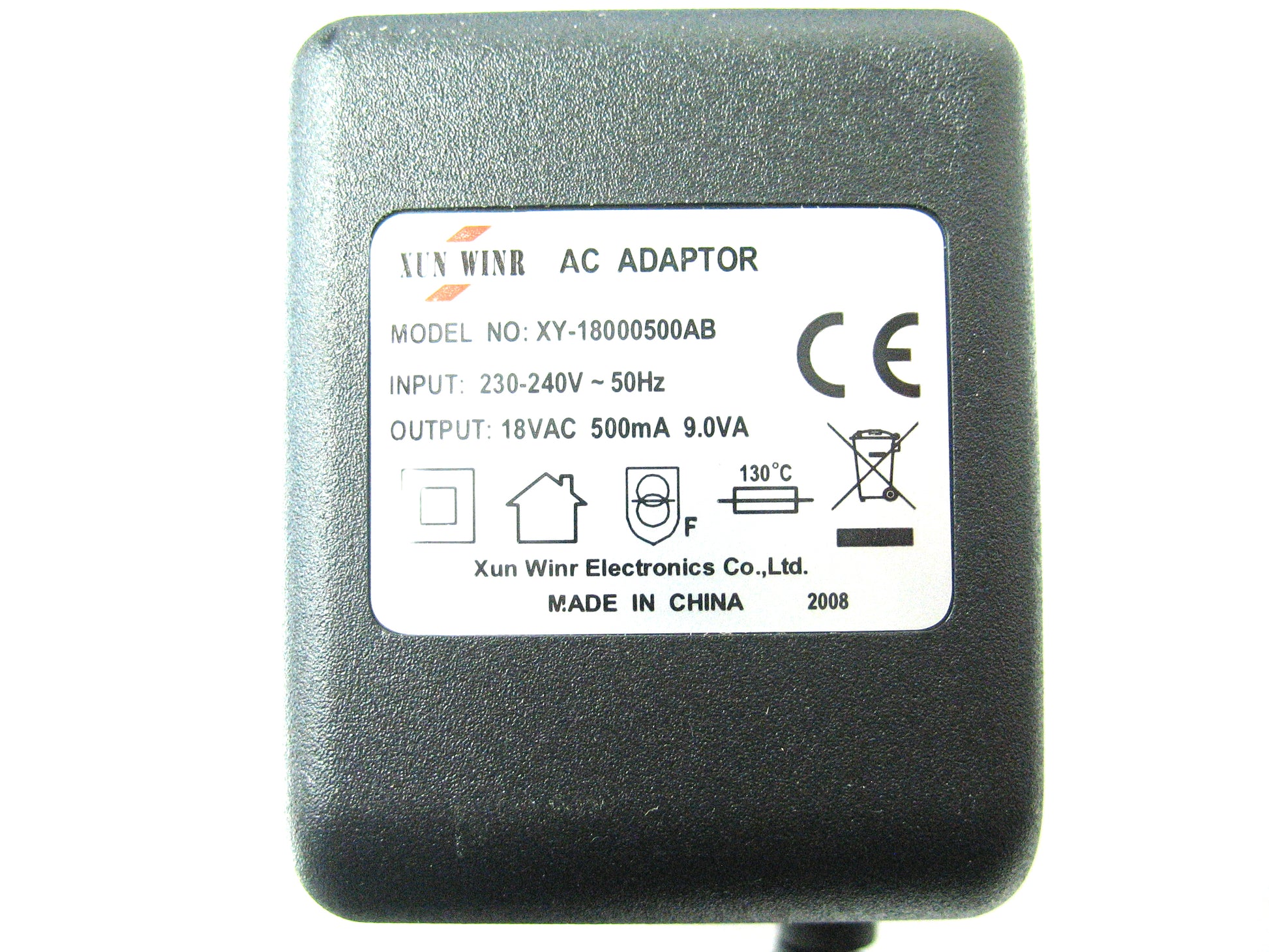A 500ma 18 volt 9VA Power Supply suitable for many 18 volt appliances requiring an AC input of 0.5 amp.